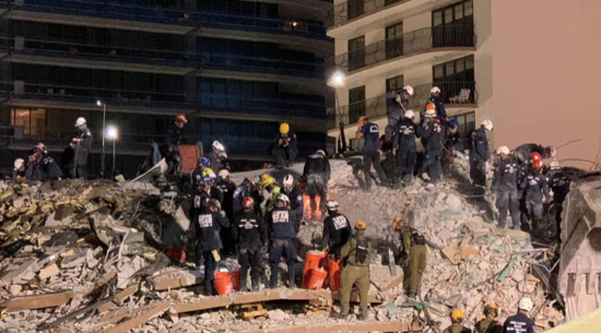 Members of the Israel Defence Forces’ Home Front Command assisting in search-and-rescue efforts in Surfside, Florida, June 2021. Credit: IDF.