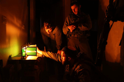Israeli soldiers in the southern Gaza city of Khan Yunis light Chanukah candles on Dec. 12, 2023. Photo by TPS
