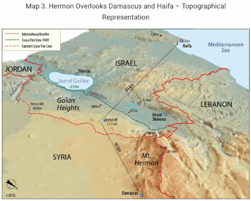 Israel’s control of one of the peaks of the Mount Hermon in the northern Golan also provides Israel with impressive intelligence gathering capabilities. It enables the use of electronic surveillance deep into Syrian territory, providing Israel with early-warning capacity in case of an impending attack. Similarly, the topographical superiority of the current defence line provides better capabilities for acquiring targets. The use of precise guided munitions, in particular, requires good intelligence, since, in the area of electronic warfare, sight lines are extremely important.