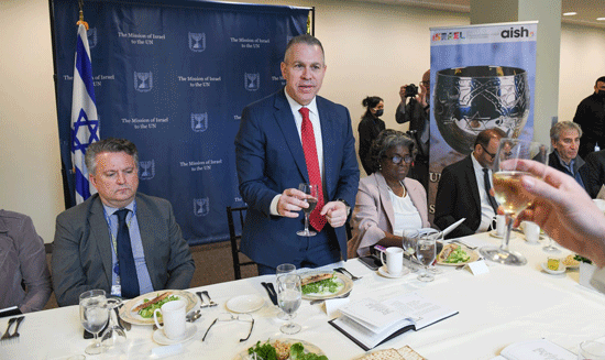 Israel’s Ambassador to the United Nations (UN) Gilad Erdan hosted an early Passover Seder at the UN on Wednesday during which he declared that “this year, when we think of ‘let My people go,’ we will also think of Ukraine.”