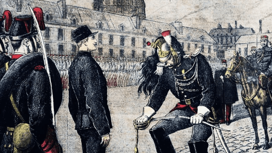 Capt. Alfred Dreyfus being stripped of rank in the French military (“Le traître : Dégradation d’Alfred Dreyfus”), Jan. 13, 1895. Credit: Henri Meyer, National Library of France (Bibliothèque Nationale de France).