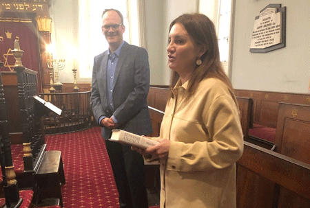 Senator Jacqui Lambie with the synagogue’s president, Jeff Schneider