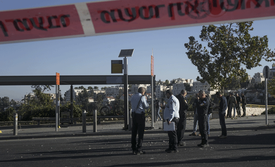 Israeli police inspect the scene of an explosion at a bus stop in Jerusalem, Wednesday, Nov. 23 Photo: Maya Alleruzzo/AP