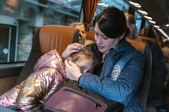 Jewish Ukrainians who fled war zones in Ukraine seen leaving for the airport to board a Jewish Agency plane to Israel in Warsaw, Poland. Photo by Olivier Fitoussi/Flash90.