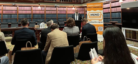 The CEO of Jewish House Rabbi Mendel Kastel spoke to MPs, Ministers and local councillors at the launch of his Couch Surfer Services launch in the NSW Parliament last week.
