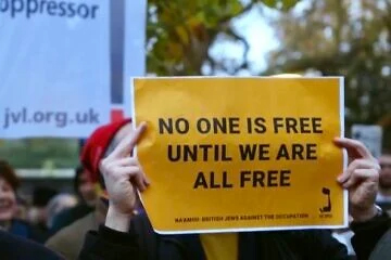 Na’amod: British Jews Against the Occupation at a protest in November 2023. Credit: Reel News via Wikimedia Commons