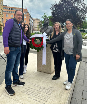 A wreath is laid at a moment to Hannah Senesh (Szenes) in Budapest, Hungary, May 3, 2024. Credit: Courtesy.