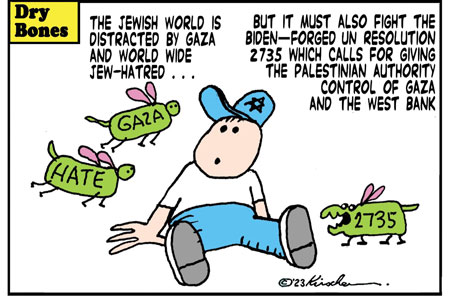 Author’s note: The cartoon — commissioned exclusively for this article — is by Yaakov Kirschen aka “Dry Bones”- one of Israel’s foremost political and social commentators — whose cartoons have graced the columns of Israeli and international media publications for decades.