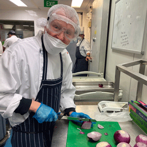 From the moment Michael arrived, he was welcomed by the Director of Catering and the Head Chef and made to feel a valued member of their team. He was given his own uniform, locker and staff access card, before being shown to his workstation in the prep room of the kitchen, where his supervisor introduced him to his new colleagues. With the help of a task list and a photo journal of him doing each task (prepared by J-Jobs), Michael can carry out all his duties with excellence. His colleagues greet him warmly when he arrives, and he joins them for a tea break in the staff room each morning.