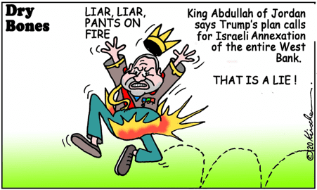 King Abdullah of Jordan has attempted to torpedo President Trump’s peace plan by falsely suggesting it could lead to a one-state solution – not the two-state solution Trump clearly envisages.