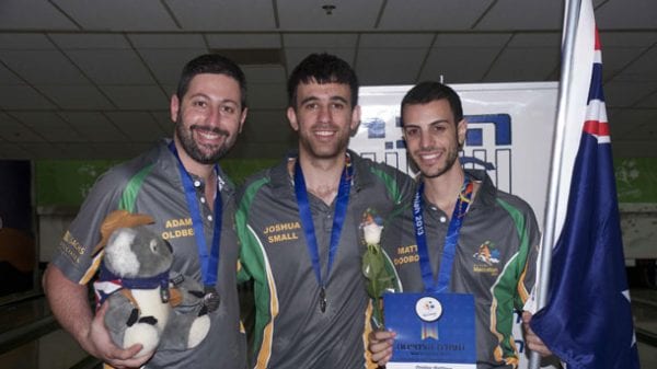 The Australian ten pin bowling triples team of Adam Goldberg, Josh Small and Matt Doobov took out the silver medal after being narrowly beaten by Israel for the gold.