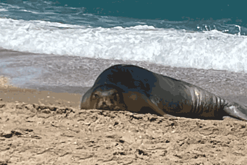 Julia, an endangered Mediterranean monk seal, on Israel’s Palmachim beach on May 20, 2023. Photo by Noga Zilberberg/Israeli Nature and Parks Authority