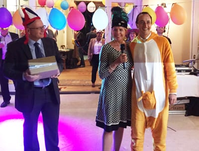 Winning the prize! Dave Sharma with Jean Saaborg-Andersen, wife of EU ambassador