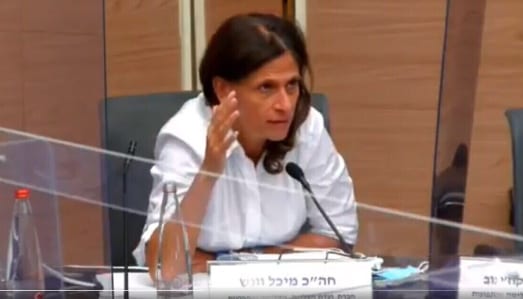 Member of Knesset from the Blue and White Party, Michal Cotler-Wunsh speaking at a Knesset hearing on social media. Source: Screenshot.