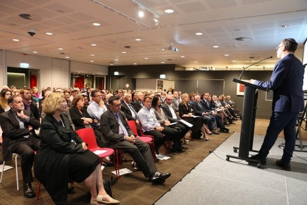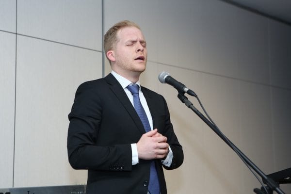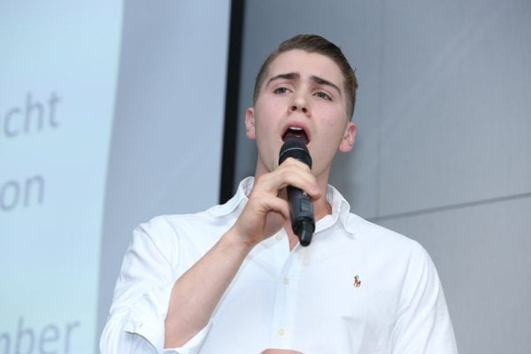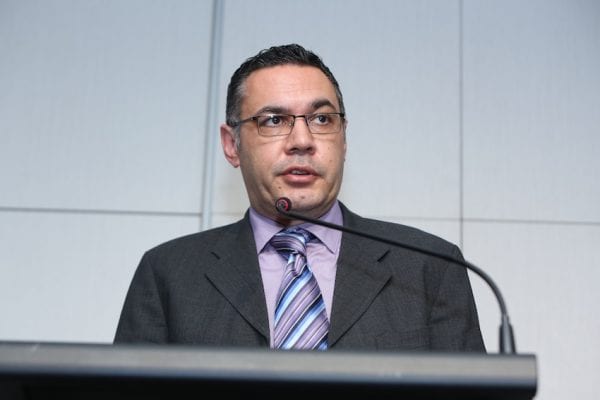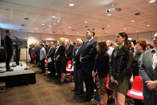The chair of the Shoah Remembrance Committee Danny Hochberg welcomed keynote human rights lawyer George Newhouse who focused on contemporary problems facing refugees fleeing home troubled home countries.
