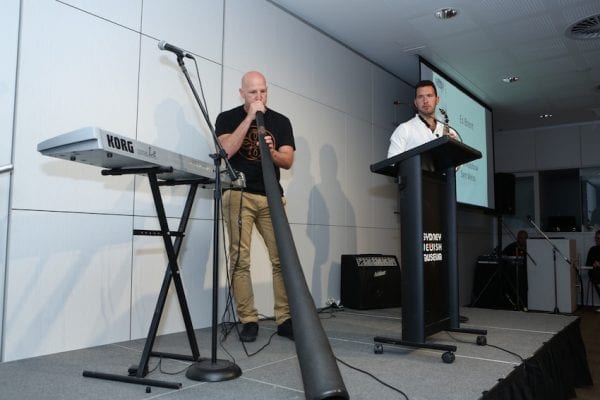 A soulful rendition of Es Brent was performed by saxophonist Sam Weiss and didgeridoo player Steve Mazabow.