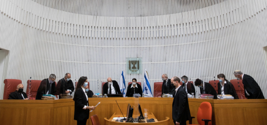 Israeli Supreme Court president Esther Hayut and Supreme Court justices arrive to petition against the Jewish Nation-State Law at the Supreme Court in Jerusalem on Dec. 22, 2020. Photo by Yonatan Sindel/Flash90