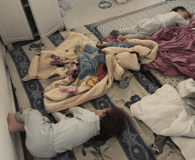 Parents in Ashdod put their children to sleep in the bomb-safe room tonight as the city continues to be under rocket fire from Gaza. (Photos by Tommy Shapiro/TPS)