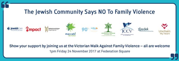 On Friday 24 November, nine leading Melbourne Jewish organisations; Jewish Care, Jewish Community Council of Victoria, Tzedek, National Council of Jewish Women of Australia, Unchain My Heart, Maccabi, Progressive Judaism Victoria, Impact, and the Rabbinical Council of Victoria, will come together to send a clear message that the Victorian Jewish community stands united in saying ‘No’ to family violence at the Annual Walk Against Family Violence.