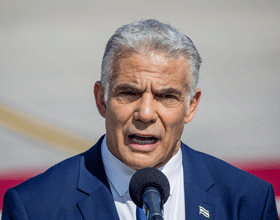 Israeli Prime Minister Yair Lapid gives a statement to the media after a farewell ceremony for U.S. President Joe Biden at Ben-Gurion International Airport near Tel Aviv on July 15, 2022. Photo by Yonatan Sindel/Flash90.