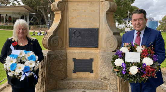 On Friday, Senator Dean Smith, Liberal Senator for Western Australia and the President of Jewish Community Council of WA Joan Hillman laid wreaths on behalf of the Jewish Community in Western Australia at the Jewish War Memorial in Perth ahead of ANZAC Day.