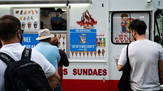 Pro-Israel demonstrators protest against Ben & Jerry’s over its boycott of the West Bank and eastern Jerusalem against anti-Semitism in New York on Aug. 12, 2021. Photo by Luke Tress/Flash90.