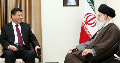 President of China Xi Jinping with Iran’s leader, Ayatollah Ali Khamenei, in 2016. Credit: Official Khamenei website via Wikimedia Commons.