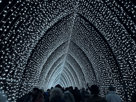 Inspired by arched church windows, The Winter Cathedral is an immersive, welcoming tunnel of light, illuminated by tens of thousands of white LED lights. It is equally spectacular when viewed from the inside or out.