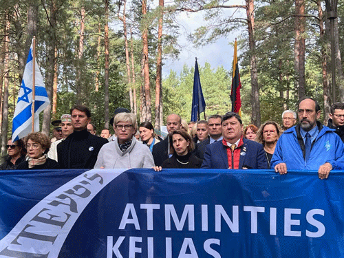 Lithuanian Prime Minister Ingrida Šimonytė, along with other senior government officials and those associated with the International Commission for the Evaluation of the Crimes of the Nazi and Soviet Occupation Regimes in Lithuania, joined members of the Lithuanian and worldwide Jewish communities in a symbolic march from the ghetto site to the mass grave in the Paneriai (formerly Ponary) suburb of the city.