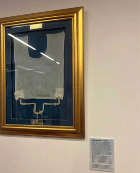 On the other end of the religious-observance spectrum, the exhibit includes a framed pair of tzitzit, which Johannesburg-born cricketer Mandy Yachad wore in a match against India—a testament to the deeply-held faith of many in the exhibit.