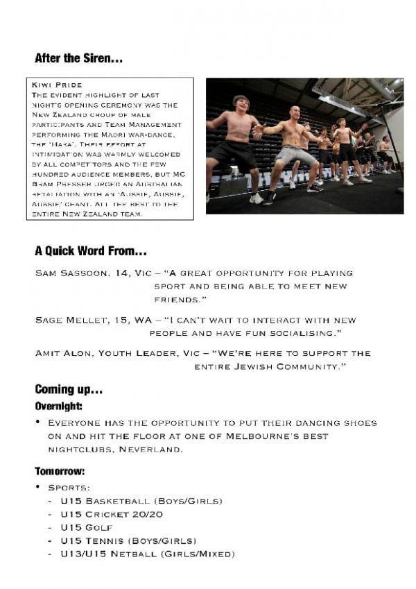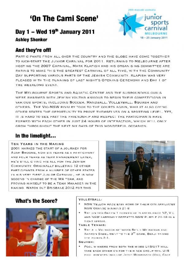 Ash Shenker reports on Day 1 of the Maccabi Junior Carnival in Melbourne