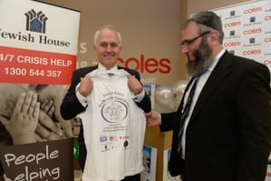 Malcolm Turnbull donates his candney’s Eastern Suburbs to lend a hand to the Jewish House’s CEO Rabbi Mendel Kastel.