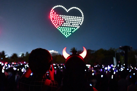 Spectators gather for a drone show on Hulhumalé island in the Maldives to celebrate Eid al-Fitr and the end of Ramadan on March 30, 2025. Photo by Mohamed Afrah/AFP via Getty Images.