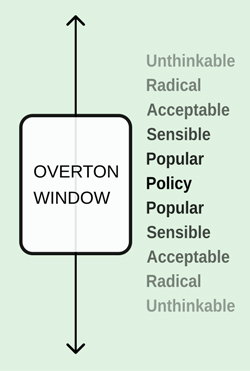 Editor: The Overton window is the range of subjects and arguments politically acceptable to the mainstream population at a given time.