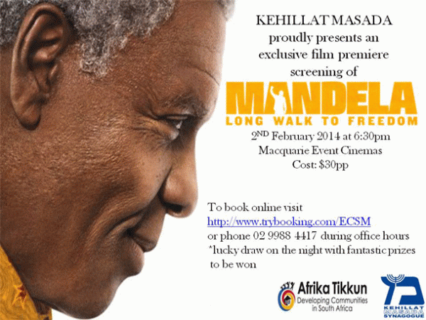 MANDELA: LONG WALK TO FREEDOM a movie featuring Nelson Mandela’s extraordinary journey from his childhood in a rural village through to his election as President of South Africa will premiere in Australia hosted by Sydney’s Kehillat Masada.