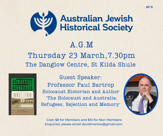 Mar-23 7:30pm Melbourne: Australian Jewish Historical Society AGM