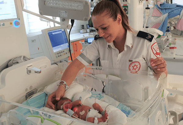 Lita, under the guidance of MDA Dispatcher Moti Rokach, began to deliver her own baby. She kept a cool head, and within minutes the baby was born. When the MDA EMTs and Paramedics arrived just moments later, they were left to assess both the mother and baby and evacuate them to the hospital.