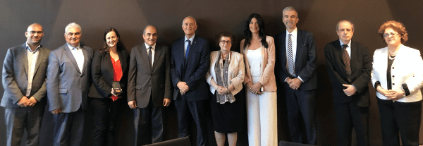 Vakis Zisimos (Deputy Head of Mission, Republic of Cyprus in Australia), Michael Christodoulou (Australian Cypriot community), Natalee Pozniak (Communications Manager, NSW Jewish Board of Deputies), His Excellency Mr Demetris Syllouris (President of the Parliament of the Republic of Cyprus), Peter Wertheim (co-CEO, ECAJ), Martha Mavrommati (High Commissioner of the Republic of Cyprus in Australia), Diane Symonds(President, Women’s International Zionist Organisation, NSW), George Vardas (Australian Hellenic Council), Socrates Socrates (Director-General of the Parliament of the Republic of Cyprus), Evi Hadjiyianni (Director, Cyprus International Relations Service)