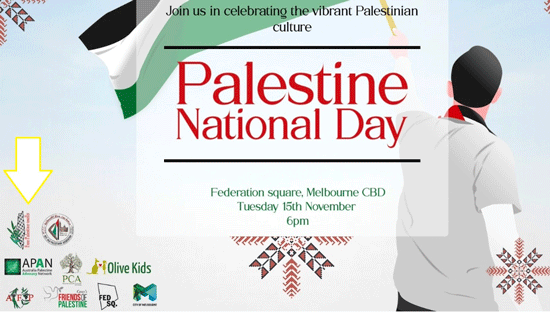 The Melbourne City Council and Federation Square have sponsored today’s Palestine National Day.