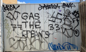 Nazi symbols, a swastika and most disturbingly the words “Gas the Jews” were spray-painted on a fence alongside the building.