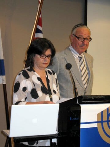 - Debra Korman introducing Judy Feiglin, one of the four Menorah Award recipients