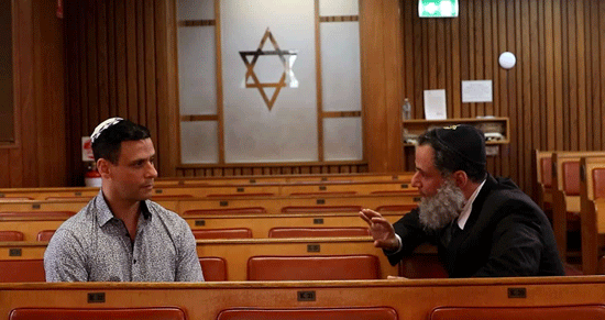 Gil and Oren are onscreen together in a sequence shot inside Sydney’s Rose Bay synagogue Kehillat Kadimah Shul where they share screen time with local actor and politician Michael Gencher, renowned performer and journalist Geoff Sirmai, and Yonatan Barukh, a teacher at the Sydney Jewish school Moriah College.