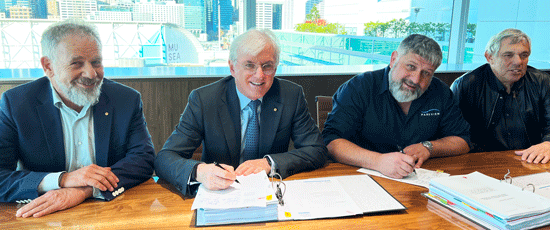 Director Phillip Wolanski, President Steven Lowy, Parkview’s Tony Touma and director Phil Green at the signing of the contract last week