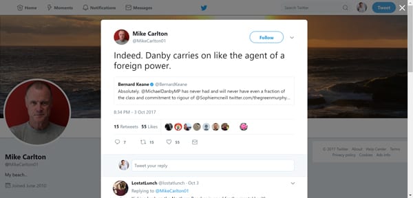 Following the publication of Federal Labor member Michael Danby’s ads criticising the ABC for its Middle East reportage, tweeters have surfaced calling the veteran politician a “foreign agent”.
