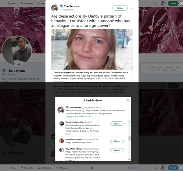 This tweet was liked by Steph Hodgins-May who was narrowly beaten  by Michael Danby at the last general federal election polling for the Greens.