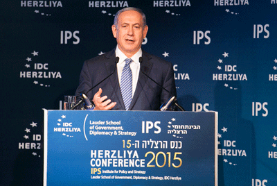 The turmoil in the Middle East presents an opportunity for new alliances that can help bring about a two-state solution to the conflict with the Palestinians, Prime Minister Benjamin Netanyahu said in an hour long address at the closing of the 2015 Herzliya Conference.
