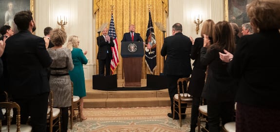 President Donald J. Trump delivers remarks with Israeli Prime Minister Benjamin Netanyahu Tuesday, Jan. 28, 2020, in the East Room of the White House to unveil details of the Trump administration’s Middle East Peace Plan. Photo by Shealah Craighead/White House.