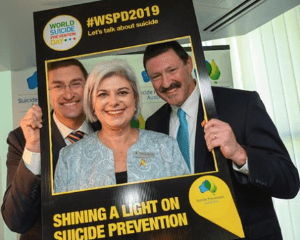 Julian Lesser, Suicide Prevention Australia CEO Nieves Murray and Mike Kelly