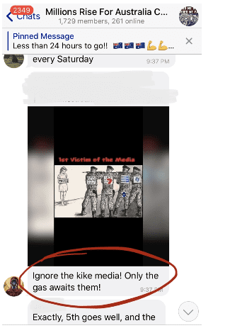 The fact that the pages of this group are clotted with slurs and disgusting antisemitic images means that what is being created here is a dangerous echo chamber of bigoted rhetoric that is frightening in its intensity.