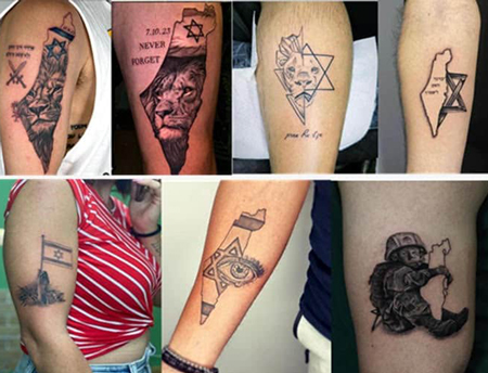 Tattoos of Israeli-Jewish nationalist symbols. Credit: Courtesy.